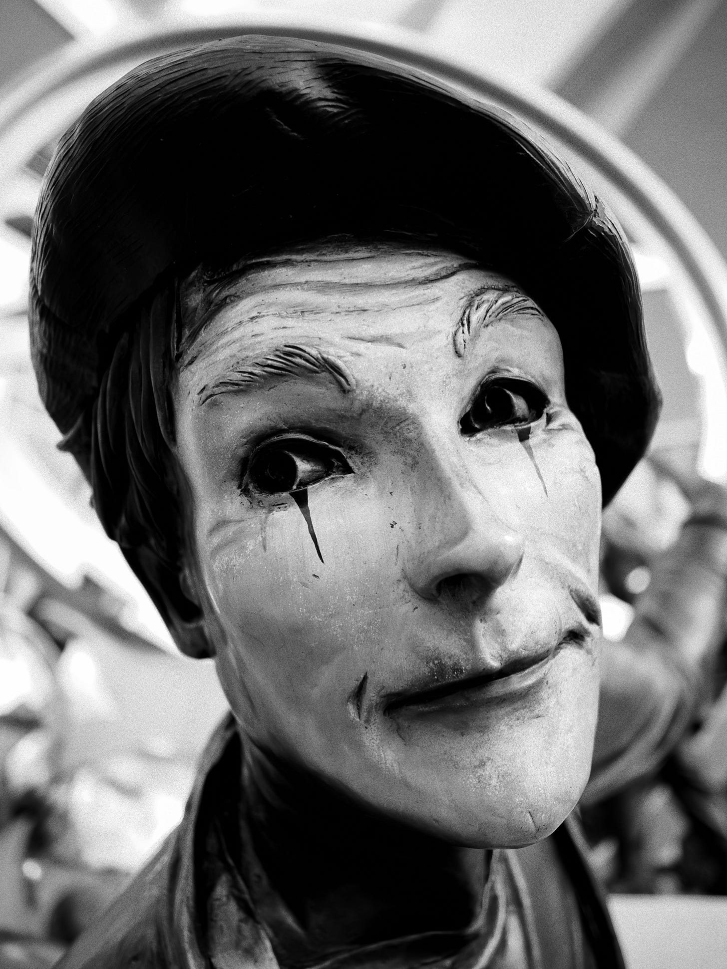 Love that mime. (Not something you hear everyday.)Possible to give a little duotone in camera?