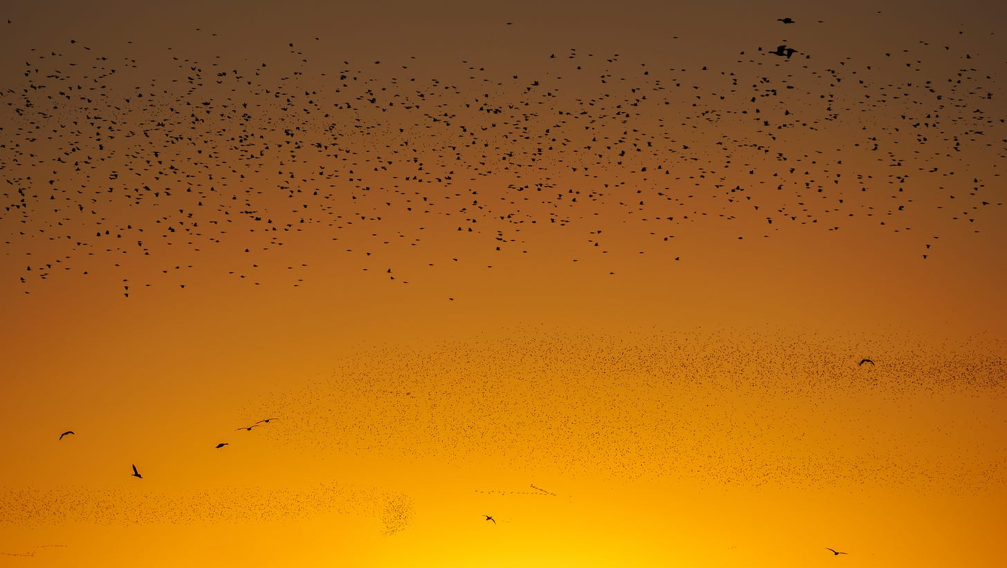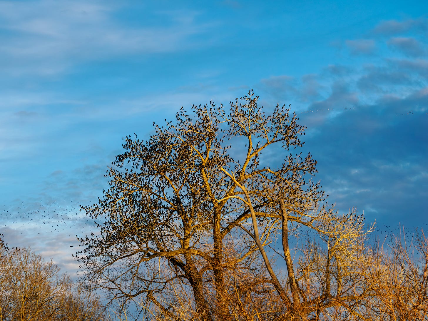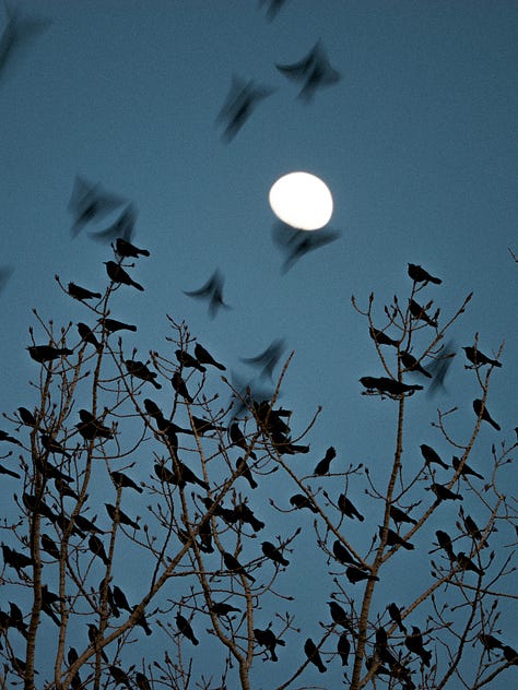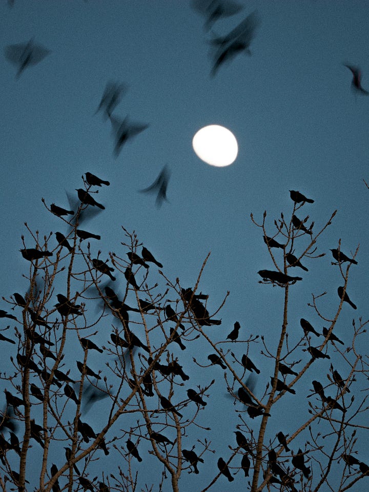 These birds hold a collective wisdom we can never understand. Endless generations of these birds hold a collective knowledge of the universe based on eons of experience. They know simple things, like the sound of wind, or the weight of raindrops, matter a lot more than what’s in the news.