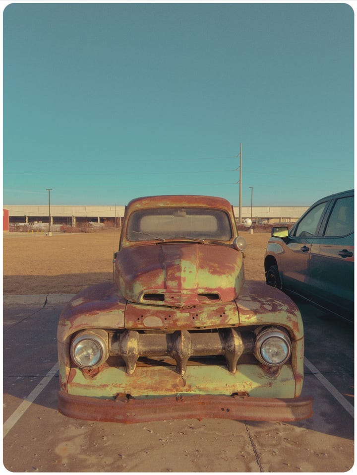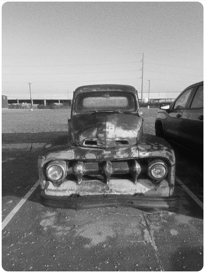 Pro cameras are too big and are NOT always with us. I don’t take my “every-day carry” to the hospital when I take my mom in, but my cell phone can capture this dusty old car in the hospital parking garage: