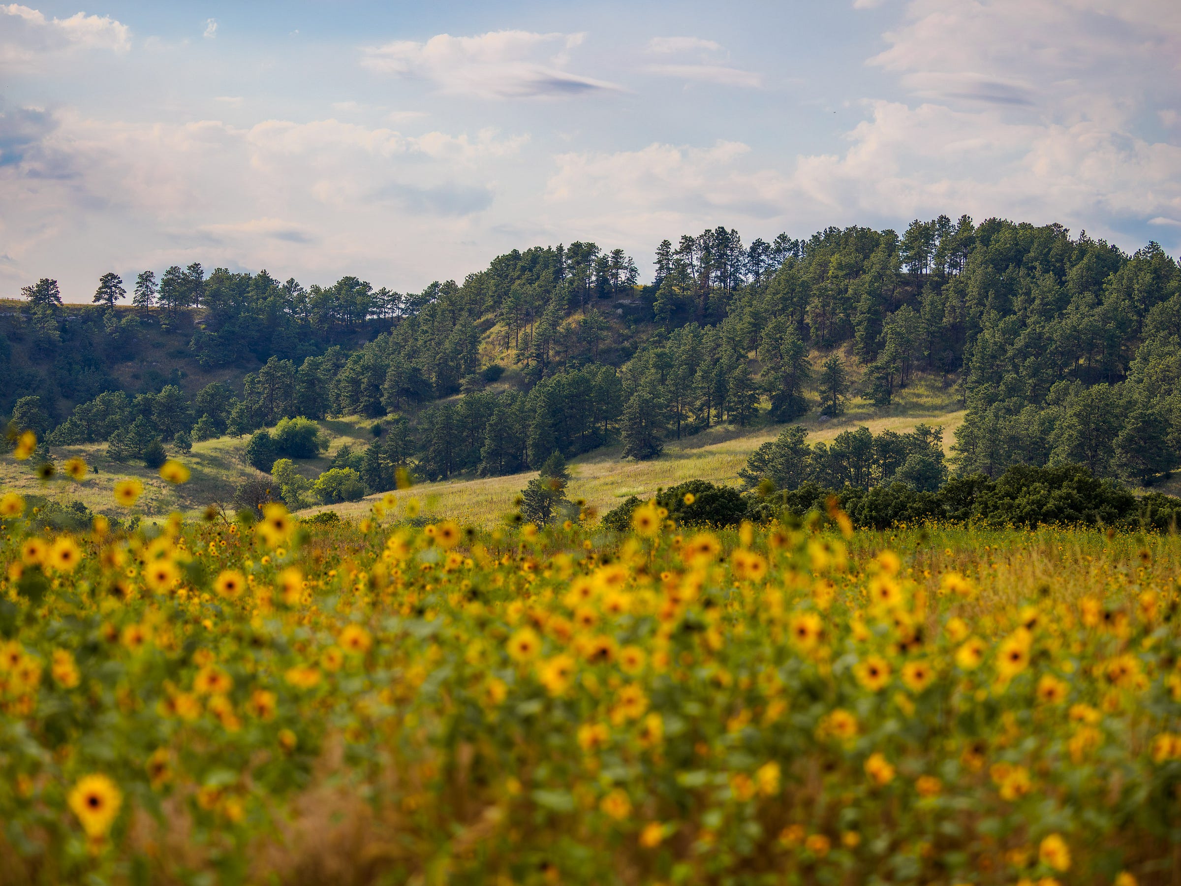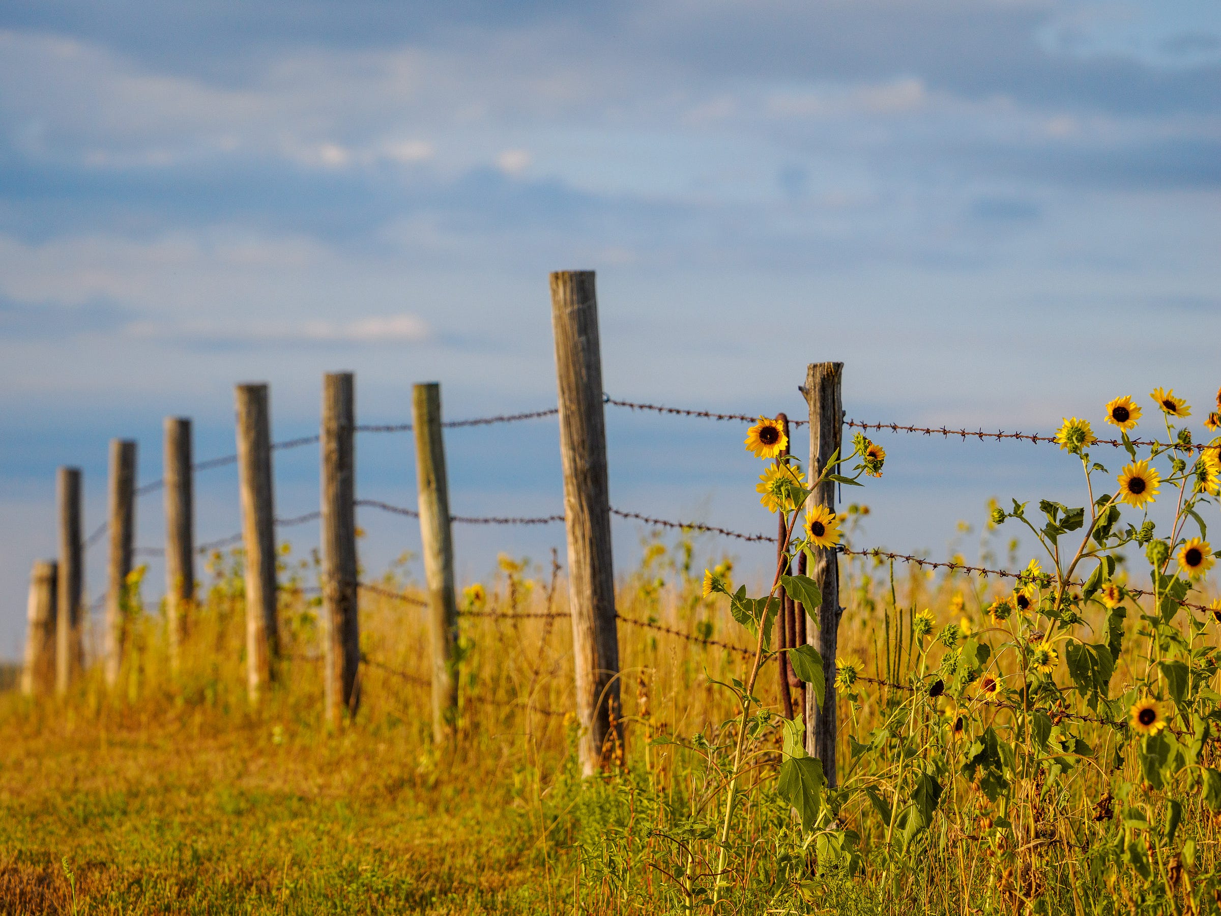 The following shot of a fence post is a personal favorite, highlighting the lens's capabilities. The details on the sunflowers are wonderful, and the focus fall-off is simply dreamy. Quick sunrise shots show sharply defined edges, fantastic color rendering, and rich contrast. Even a shot from a high vantage point, with atmospherics from moisture, maintained fantastic detail throughout the frame.