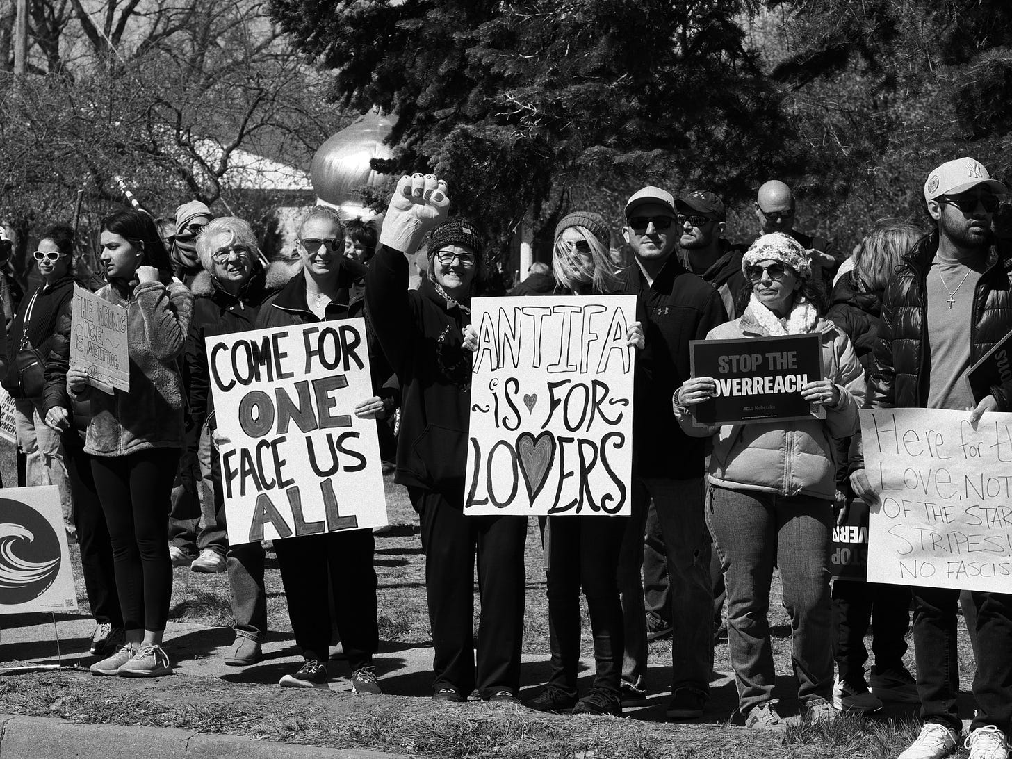 I just wanted to write how wonderful it was to photograph the protest in Omaha, Nebraska’s Gallagher park on March 28, 2026. In all this darkness, standing with others was food for the soul, and I want to start doing more to fight against those who want a perverted, authoritarian government.