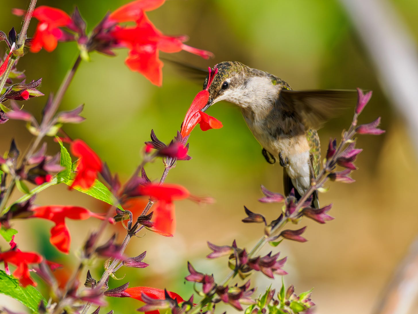 The double-nature of the 300 f/4 PRO (the ability to get distant subjects AND do close-ups in the garden) allows for these kind of hummingbird shots easily: