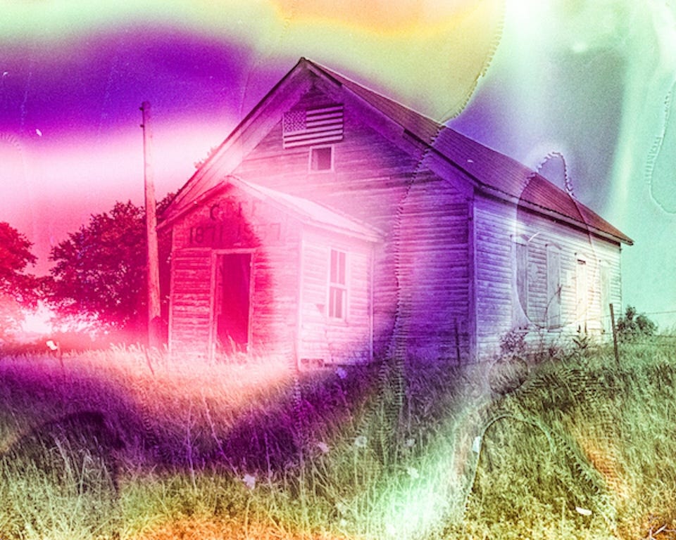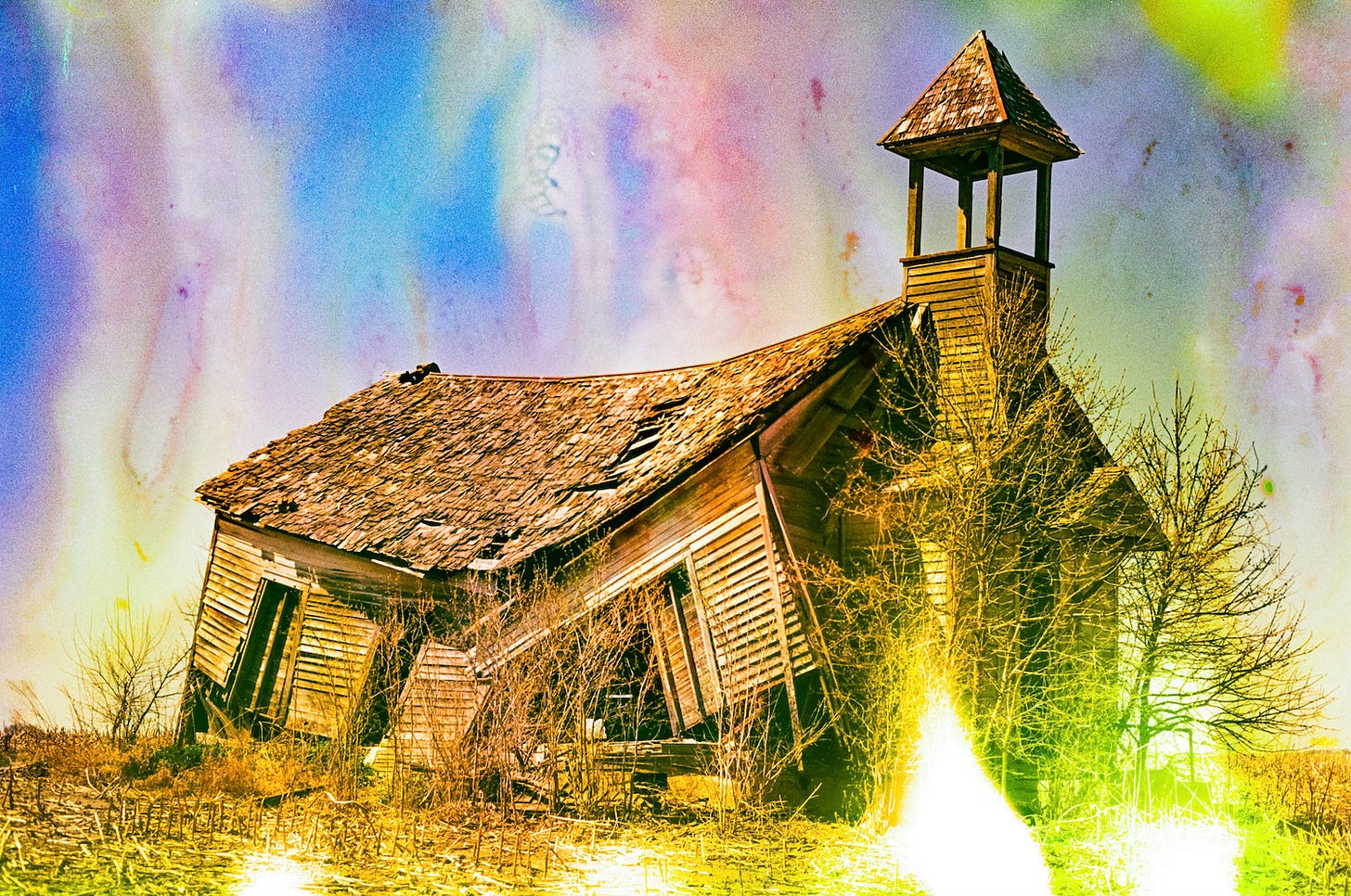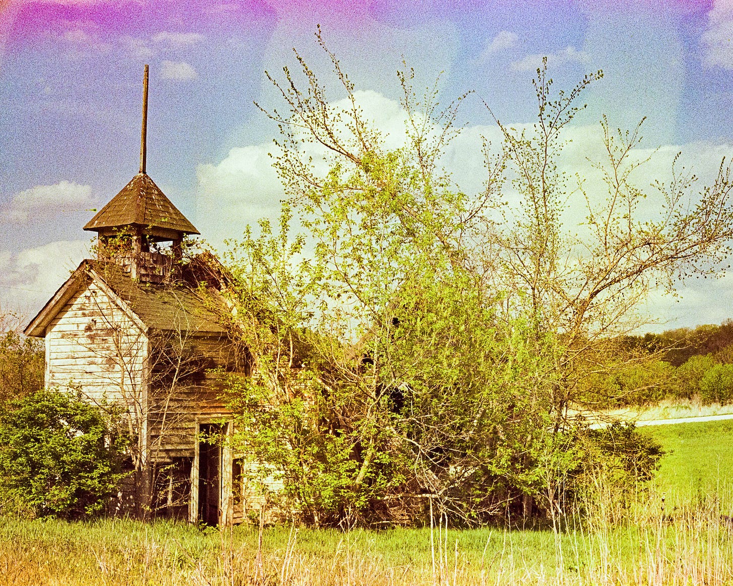 I have always enjoyed photographing abandoned buildings, especially in rural areas (think barns, one room schoolhouses, farm houses). There is power in seeing an abandoned structure fighting against nature, time and gravity and documenting it as it is, at that moment, capturing it for posterity. As I grew as a photographer and began exploring 35mm film photography and eventually altering my exposed film with a process called “film soup” before having it developed, my philosophy changed.